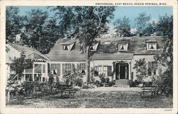 Front: ANCHORAGE, EAST BEACH, OCEAN SPRINGS, MISS. 105459 Back: Dear Sally, you will get this after I get home lut love, your Brother | Gonzales, CHI JUL 201 7. PM MISS (19 pello just the Miss Miriam вате Attaya TE 6098 FRANKLIN POS Jai