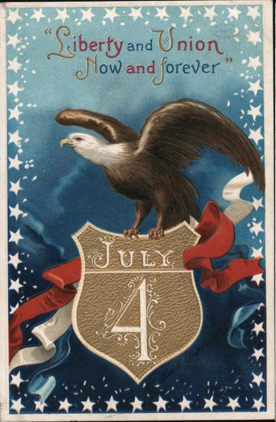 Front: Liberty and Union Now and forever JULY 3 Back: International Art Pub!. Cc. Series No 2443 L.A.P. MARK TRADE NEW-YORK BERLIN HERE.