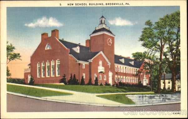 Front: NEW SCHOOL BUILDING, BROOKVILLE, PA. tt FA E-6382 Back: 25 J.P. WALMER, BOX 224, HARRISBURG. PA.