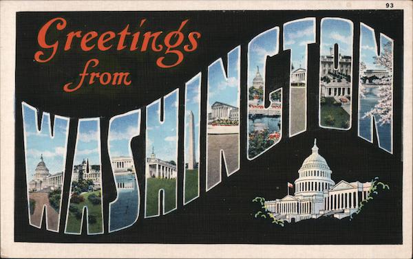Front: Greetings EDUNT 93 Back: PUB. BY THE WASHINGTON NEWS COMPANY, WASHINGTON, D. C. 136605 SLOR POSCARD CHRO WASHINGTON, D.C. HERE