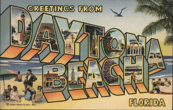 Front: GREETINGS FROM CURT TEICH & CO., INC. BE **** PA Onte FLORIDA Back: D-5-DAYTONA BEACH NEWS SERVICE, INC., DAYTONA BEACH, FLA. GENUINE CURTEICH-CHICAGO "C.T. ART-COLORTONE" POST CARD (REG. U.S. PAT. OFF.) 7B-H1039 PLACE