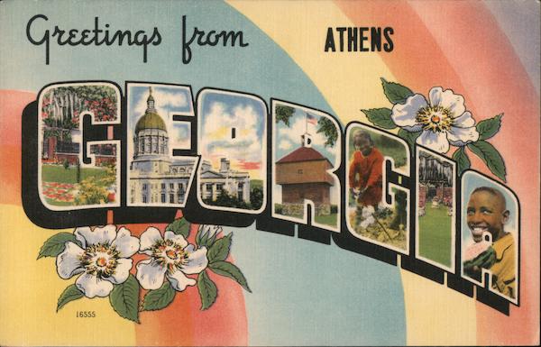 Front: Greetings from 16555 NA ATHENS 102 Back: FOR ASHEVILLE POST CARD CO., ASHEVILLE, N.C A "COLOURPICTURE" PUBLICATION HERE