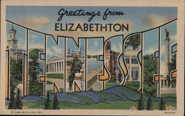Front: CURT TEICH & CO., INC. Greetings from ELIZABETHTON LN 8838 11 9A-H1742 Back: GENUINE CURTEICH-CHICAGO "C.T. ART-COLORTONE" POST CARD (REG.U.S. PAT. OFF.) PLACE