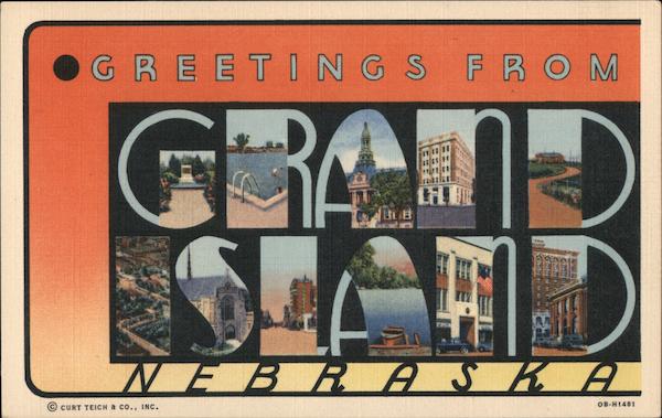 Front: GREETINGS FROM GRAT CURT TEICH & CO., INC. RUSS 832333 NEBRASKA OB-H1481 Back: DISTRIBUTED BY HANDLER NEWS AGENCY, GRAND ISLAND, NEB. GENUINE CURTEICH-CHICAGO "C.T. ART-COLORTONE" POST CARD (REG.U.S. PAT. OFF.) PLACE