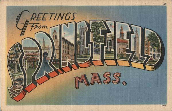 Front: ******* REETINGS CEILINDUNG MASS, 47 74831 Back: PUBLISHED BY SPRINGFIELD NEWS COMPANY TICHNOR QUALITY VIEWS" REG. U.S. PAT, OFF. MADE ONLY BY TICHNOR BROS., INC., BOSTON, MASS. MADE IN U. S. A