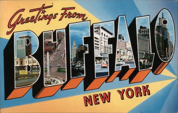 Front: Greetings From BE4 GREATER BUFFALO AIRPORT Kandigilit MPLE CRANTS NEMME NEW YORK Back: KB-16 MADE IN U.S. A. K-9086 Lusterchrome" REG. U.S. PAT. OFF. MADE ONLY BY TICHNOR BROS., INC., BOSTON 15, MASS.