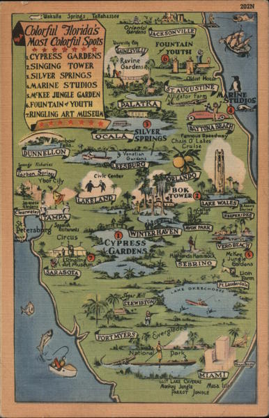 MAP OF COLORFUL ATTRACTIONS OF FLORIDA