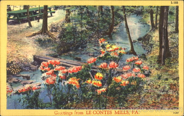 Front: L-105 Grectings from LE CONTES MILLS, PA. 17,357 Back: A-COLOURPICTURE PUBLICATION, BOSTON 15, MASS., U. S. A