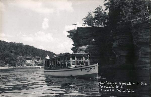 Front: WHITE EAGLE 37-R-844 THE WHITE EAGLE AT THE 'HAWK'S Bill. LOWER DEILS, Wis Back: PHOTO POST GARD -Kodak- STAMP