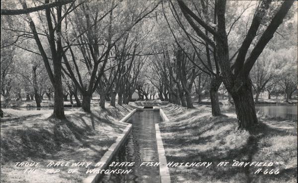 18 TROUT RACEWAY AT STATE FISH HATCHERY AT BAYFIELD" WISCONSIN H.666