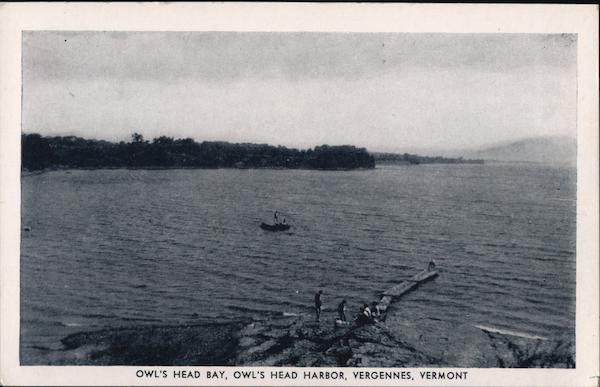 Front: OWL'S HEAD BAY, OWL'S HEAD HARBOR, VERGENNES, VERMONT Back: Eagle Post Card View Co., Inc., New York DVIEW 1976,60 MADE IN USA