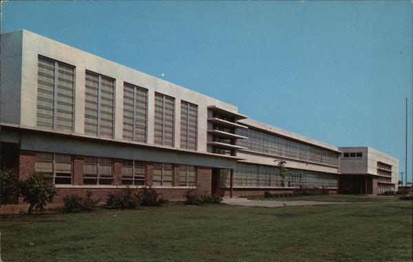 DIST. BY DEEP SOUTH SPECIALTIES, INC., P. O. BOX 1802, JACKSON, MISS. 39205 NATURAL COLOR REPRODUCTION-CURTEICH COLOR ART-CREATION REG.U.S. PAT. OFF. 7C-K604 GREENVILLE, MISSISSIPPI COLEMAN HIGH SCHOOL FOR NEGROES PLACE