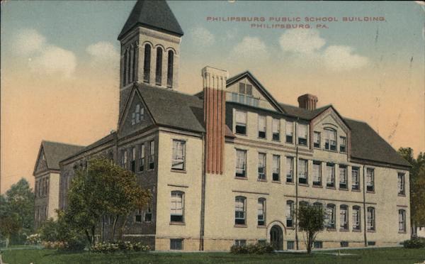 Front: PHILIPSBURG PUBLIC SCHOOL BUILDING, PHILIPSBURG, PA. Back: Sheridan no 4.5= Who Martha & Siegfurt Mis E тал id 110-10 Philipatung Pa.
