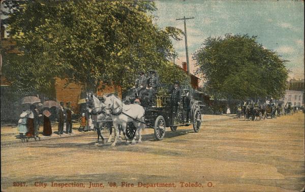 Front: 2047 City Inspection, June, '08, Fire Department, Toledo, O. Back: S. H: Knox & Co., Toledo, O. 11-PM Fo Hello Gladys auren Toledo in Will write when get back to Kadye Custer ra Love. Pora. Barnesvelle Ohio