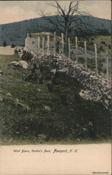 Front: Wild Boars, Corbin's Park, Newport, N. K. Handcolored. Back: Published for Carlton Hurd, Newport, N. H. (Germany). HI 52447 THIS BIDE FOR THE ADDRESS. L