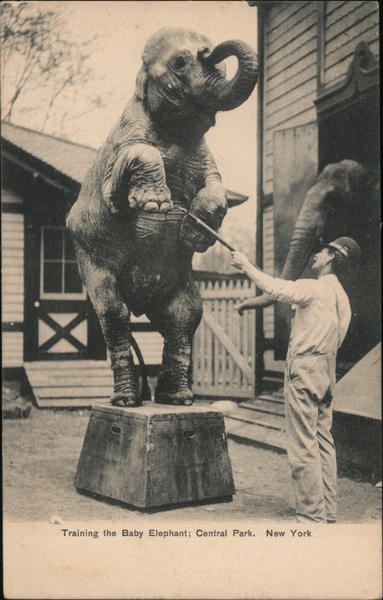 Front: Training the Baby Elephant; Central Park. New York Back: No. 1746 Published by The American News Company, New York-Leipzig-Berlin Two cents