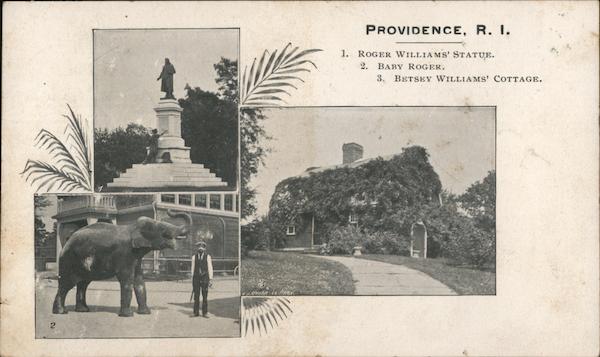 Front: TO 4.J.RYDER CO.PROV. Co PROVIDENCE, R. I. 1. ROGER WILLIAMS' STATUE. 2. BABY ROGER. 3. BETSEY WILLIAMS' COTTAGE. Back: CORPOEM ONE CENT, TWO CENT.