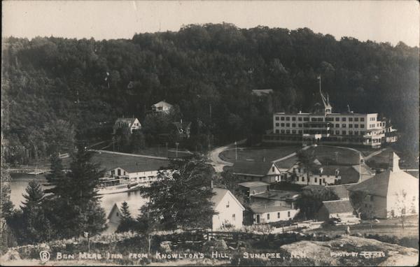 Front: 8 BEN MERE INN FROM KNOWLTON'S HILL, SUNAPEE 114 PHOTO BY MRS 06 Back: PHOTO AND CARD BY FREDERICK F. AMES, JR., YE LITTLE PHOTO STUDIO, SUNAPEE HARBOR, N. H POST CARD