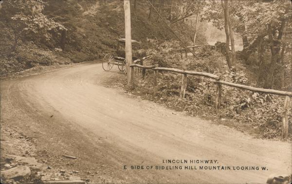 Front: LINCOLN HIGHWAY. E SIDE OF SIDELING HILL MOUNTAIN LOOKING W. Back: HERE O A AZO A NAME AND ADDRESS HERE