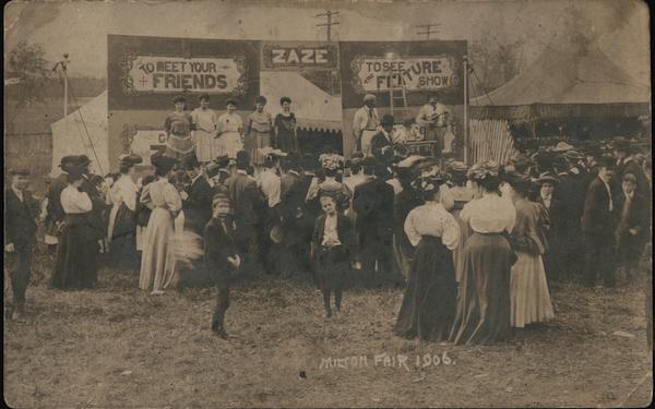 TO MEET YOUR- +FRIENDS ZAZE TO SEE FILL SHOWS 49 MILTON FAIR 1906.