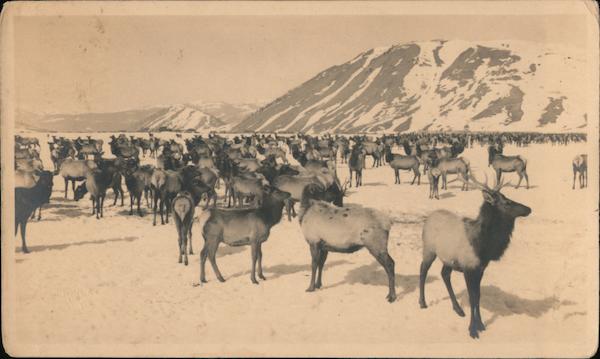 AN ELK HERD ON THE FEEDING GROUNDS AT JACKSON, WYOMING