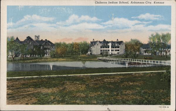 Front: SEENE ***** 0 YY PH Chilocco Indian School, Arkansas City, Kansas ***** 17 Pa 1A1308-N Back: GENUINE CURTEICH-CHICAGO C.T. AMERICAN ART POST CARD (REG. U.S. PAT. OFF.) PLACE
