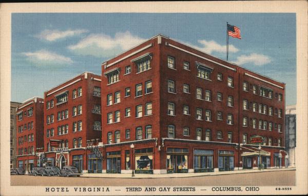 Front: OCA CO GOLFA AU хвихвихви Al SIXIX HOTEL VIRGINIA THIRD AND GAY STREETS *8 41 morei VERGINIA COLUMBUS, OHIO F1 10 6B-H555 Back: GENUINE CURTEICH-CHICAGO "C.T. ART-COLORTONE" POST CARD (REG.U.S. PAT. OFF.) PLACE