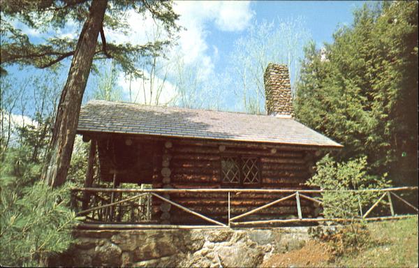 | The log Cabin is the oldest studio at the MacDowell Colony, Peterborough, N. H. In it the celebrated composer, Edward MacDowell, wrote some of his most admired music. The studio was the gift of the Composer's wife. When it was completed the MacDowells wrote their names in the wet cement of the hearth where the visitor today may clearly read "Edward and Marian, 1899". |