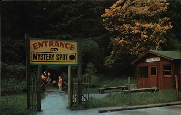 Front: ENTRANCE To MYSTERY SPOT AN REDWOOD NOVELTIES Back: Entrance to THE MYSTERY SPOT, Santa Cruz, California. SC5172 MIKE ROBERTS BERKELEY 94710 U.S.A.