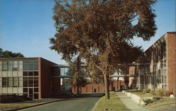 Campus scene of Fitch Hall of Pharmacy, Harvey