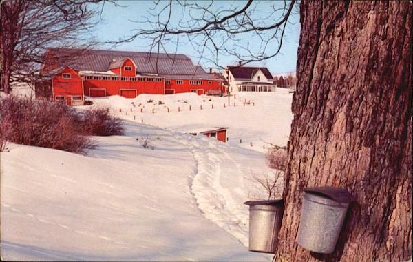 | When, in the early spring, the sap begins to flow, maple sugar workers commence the activities which have remained much the same through the years. Ideal weather for good "runs" of sap is when there is thawing in the daytime and freezing during the night. |