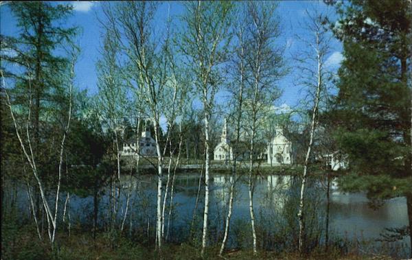 Here apparently spring has set the stage with a backdrop of an old colonial village scene as viewed through a sheer silk screen. This unusual setting observed from Route 10 in Marlow, New Hampshire.