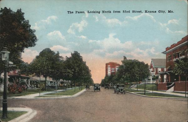 Front: 33 ST The Paseo, Looking North from 33rd Street, Kansas City, Mo. BO RO 109 242 M Back: Pub. by Max Bernstein, Kansas City, Mo. 16611N (94) 3J Co