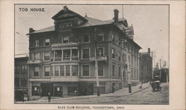 Front: TOD HOUSE TO TE! ANSON 66 ELKS CLUB BUILDING, YOUNGSTOWN, OHIO Back: I have two of there no will. enclose this one. مه Miss Mayme Bristo