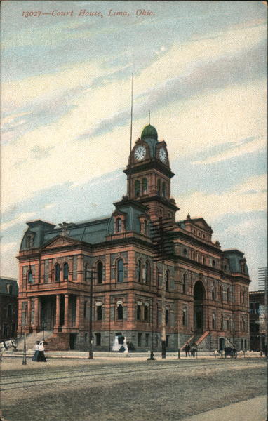 Front: 13027-Court House, Lima, Ohio. 10 ANCH CUNA INM UN TICKE Back: Souvenir Post Card Co., New York Printed in Germany. Post Carde goe This space is for the TWO CENTS