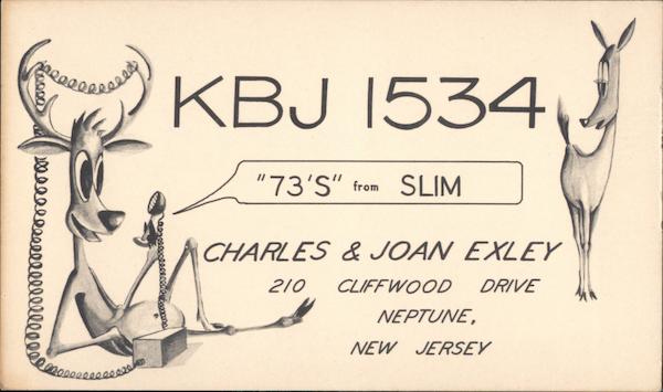 Front: 10000 lees eeeee ese leeeeeeeee aga seeeeeeeeeeeeba) KBJ 1534 "73'S" from SLIM CHARLES & JOAN EXLEY 210 CLIFFWOOD DRIVE NEPTUNE, NEW JERSEY Back: Hi, Mary & Harry Recid your TNX- Ast from Acco 491- Best of 73's- Slim in кутат -