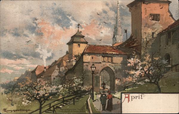 Front: Euggenbergse Monatsgrüfse, Serie II. Druck uVerlag v.M.Seeger, Stuttgart fi April 51; 175852 Back: An 152.03 4-5 N Die florate Offenseitly. NESHOPS Pabrik Wohnung straße und Hausnummer) IN 585 5 15.4.10 ** EUTSCHES REICH