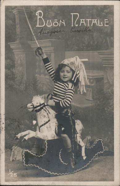 Front: 1/25 BUON NATALE Anagana Carrilla. Back: UNION POSTALE UNIVERSEL CART LI POSTALE P. & F. a T. & VIB 7/8 03 STKAS -- is abyses AMETS IN Sin Ms. Emma Pasquariello Box 189 PO. Floversville mälle New Zorch. America...