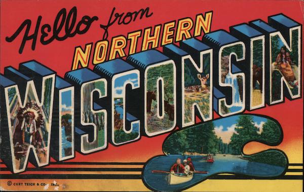 Front: Hello from NORTHERN WISCONSIN CURT TEICH & CO. INC. Back: DISTRIBUTED BY ANTIGO CARD SERVICE, ANTIGO, WIS. CURTEICHCOLORⓇ3-D NATURAL COLOR REPRODUCTION (REG. U. S. A. PAT. OFF.) 3DK-1752 PLACE