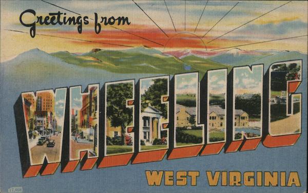 Front: Greetings from 17,008 10 WEST VIRGINIA Back: Sold by Photo-Crafters, Wheeling. W. Va ACOLOURPICTURE PUBLICATION, CAMBRIDGE, MASS., U. S. A. HERE