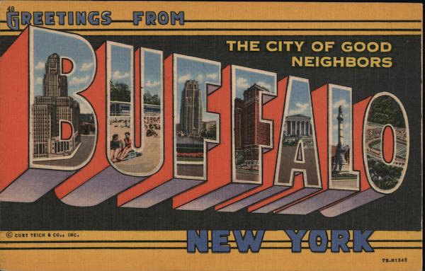 Front: 48 GREETINGS FROM THE CITY OF GOOD NEIGHBORS BEPETALE CURT TEICH & CO., INC. NEW YORK 7B-H1345 Back: DISTRIBUTED BY BUFFALO STATIONERY CO., BUFFALO, N. Y. GENUINE CURTEICH-CHICAGO "C.T. ART-COLORTONE'' POST CARD (REG. U.S. PAT. OFF.) ver в