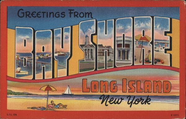 Front: L.I.L 104 GREETINGS FROM 24 ******** LONG ISLAND New York K 2375 Back: MADE BY THE TOMLIN ART COMPANY, NORTHPORT, LONG ISLAND, N. Y. GREETING TOMLIN CARDS 34 COLOR VIEW HERE