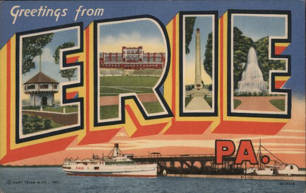 Front: Greetings from â’¸CURT TEICH & CO., INC. TTTTT ERIE: DET *** PA. 6C H118 Back: SPANGENTHAL'S WHOLESALE VIEW CARDS' SPECIALISTS, ERIE, PA. GENUINE CURTEICH-CHICAGO "C.T. ART-COLORTONE" POST CARD (REG. U.S. PAT. OFF.) PLACE