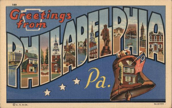 Front: 149 ЧИДАРЫН ТА 229 Pa. Greetings Эс. т. а со. 985 ZA-H1777 Back: CHARLES F. WILLIAMS, PHILADELPHIA, PA. GENUINE CURTEICH-CHICAGO "C.T. ART-COLORTONE" POST CARD (REG. U.S. PAT. OFF.) joh PLACE