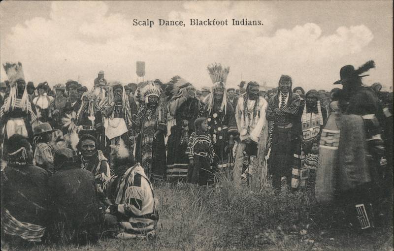 Front: CU Scalp Dance, Blackfoot Indians. Halit Back: Copyrighted 1907 by A. Y. & Co. PRIVATE POST CARD. THIS SPACE MAY BE USED FOR CORRESPONDENCE. To. 158-5 1 C. CANADA AND 2 C FOREIGN. THIS SPACE IS FOR ADDRESS ONLY.
