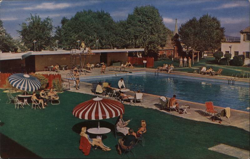 Panoramic view showing pool in setting of the old