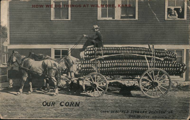 Front: HOW WE DO THINGS AT WILMORE, KANEE OUR CORN (EF COPR. BY ALFRED STANLEY JOHNSON OR OCT 301409 WRUCU OS Back: Dear forenes will конте be at Heatherford recover fast. next sa way Friend Gordon 600 #6 Missforene Osborn, وسه Weatherford, Okla.