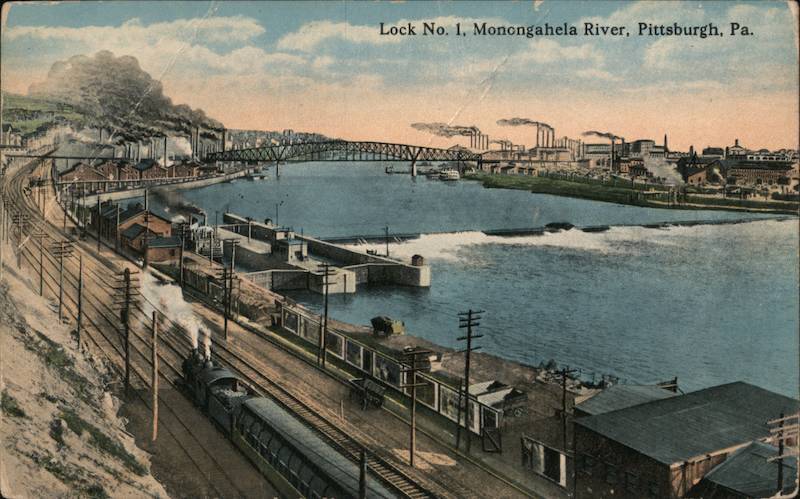 Front: Lock No. 1, Monongahela River, Pittsburgh, Pa. M Back: PITTS PUBLISHED BY I. ROBBINS & SON, PITTSBURGH, PA. MADE IN U. S. A PA PITTSBURGH PROMOTES PROGRESS. <P ALS 4: Randson A-45835 AND CANADA. TWO CENTS.