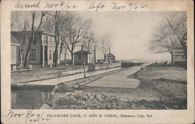 Front: Arrived nor 8/22 left Norter. пит Now 8/0 DELAWARE LOCK, C. AND D. CANAL, Delaware City, Del. 2. CAFETE MY 2683 Back: میرد A. M. SIMON, 32 Union Square, New York Post Card