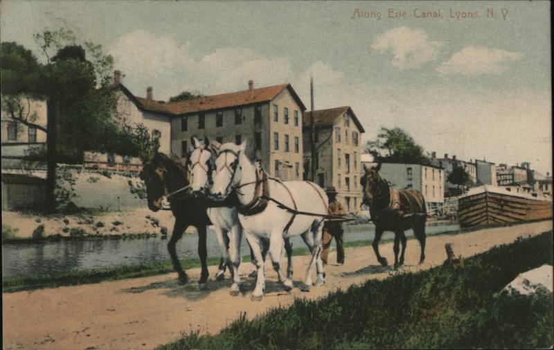Front: A78 717 TITE 111 111 Along Erie Canal, Lyons, N. V ASTER SORD Back: Publ. by W. E. Bourne, Lyons, N. Y. No. 32 Made in Germany 500 410 HONST AUGI9 4 PM ADDRES 9/3 Me Chontes Dent Cel ملح ton J... 1